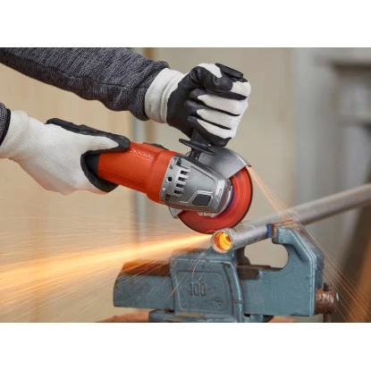 Der Black+Decker Winkelschleifer BEG110 ist ein kraftvoller und leistungsstarker 750 W Einhand-Winkelschleifer, der vielseitig einsetzbar ist für Schrupp-, Schleif- und präzise Trennarbeiten. Ein Nullspannungsschalter verhindert ein unabsichtliches Anlaufen der Maschine nach einem Stromausfall.