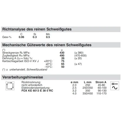 Die mit Rutil-Cellulose umhüllte Böhler Stabelektrode mit angenehmer Verschweißbarkeit in allen Positionen, auch senkrecht fallend, ist besonders gut für Bauschlosser und Montagearbeiten geeignet. Des Weiteren überzeugt sie durch ein ausgezeichnetes Schweiß- und Fließverhalten, gute Zünd- und Wiederzündeigenschaften, einen sicheren Einbrand und eine flache Naht.