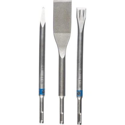 Das Bosch Meißel-Set SDS plus Long Life besteht aus Flach-, Spitz- und Fliesenmeißel und ist für verschiedene Materialien geeignet. Der Flachmeißel ermöglicht einen guten Materialabtrag. Der Spitzmeißel eignet sich durch seine gedrehte Spitze für breite Materialabträge und der Fliesenmeißel ist für ein bruchloses Ausheben von Fliesen geeignet. Die Meißel sind mit dem Schaftsystem des SDS plus kompatibel.