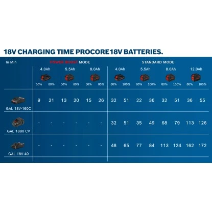 Der Bosch Professional Akkupack ProCore 18 V/4 Ah ist der leichteste und kompakteste Akku der Bosch ProCore18V-Reihe. Bei optimierter Größe und minimalem Gewicht verfügt er über eine neue Generation der Zellentechnologie, welche die gleiche Leistung liefert wie ein 4 Ah-Standardakku. Für zusätzliche Flexbilität ist er sowohl mit allen neuen als auch vorhandenen Bosch Professional 18 V-Werkzeugen und -Ladegeräten kompatibel.