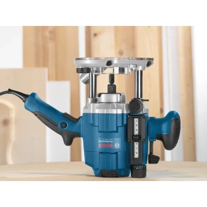 Die Bosch Professional Oberfräse GOF 1250 CE überzeugt mit einem leistungsstarken 1.250 W Motor und mit einem hohen Arbeitskomfort. Sie hat eine enorm starke Durchzugskraft und ermöglicht Ihnen durch die patentierte Frästiefen-Feineinstellung eine außergewöhnliche Präzision mit 1/10 mm Schritten bei der fixierten Tauchfunktion. Mit dem ergonomischen Griffdesign können Sie unterschiedliche Griffpositionen einnehmen, um sich individuell der jeweiligen Anwendung anzupassen.