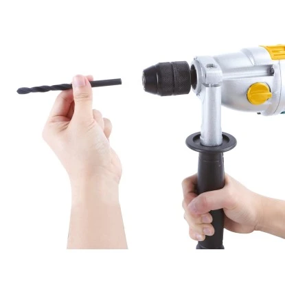 Mit einer Leerlaufdrehzahl von 0 – 1.100/min (Umdrehungen) ist die Maschine für vielfältige Bohr- und Schraubarbeiten in Haus und Garten bestens geeignet. Mithilfe des belastbaren Schnellspannbohrfutters können Sie Bohr- und Schraubaufsätze unkompliziert und schnell wechseln. Die Aufnahme hat einen Ø von 13 mm und ist damit für entsprechende Bits und Bohrer geeignet. Die maximalen Bohrdurchmesser betragen 16 mm in Beton, 13 mm in Stahl und 25 mm in Holz.