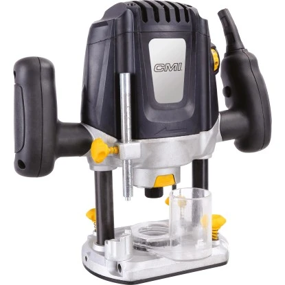 Die CMI Oberfräse C-OF-1200 B hat eine Leistung von 1.250 W und eignet sich mit einer Hubhöhe von 55 cm und einfach einstellbarer Tiefen-Feineinstellung für anspruchsvolle wie auch kreative Holzarbeiten. Ergonomische Griffe und ein transparentes Spanschild sorgen dabei sowohl für Komfort als auch Schutz während der Arbeit. Die Leerlaufdrehzahl lässt sich je nach Anwendung und Material zwischen 12.000 – 30.000/min (Umdrehungen) regulieren. Die Spindedelarretierung ermöglicht ein einfaches Wechseln der Fräser.
