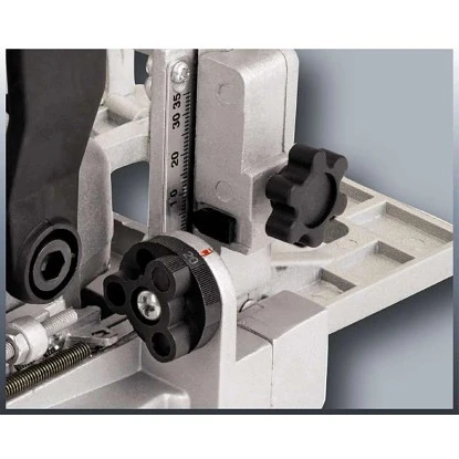 Die Einhell Flachdübelfräse TC-BJ 900 ermöglicht saubere Verbindungen. Mit dem handlichen, leistungsstarken Gerät können ambitionierte Heimwerker perfekte Stoß- und Kastenverbindungen für eine Vielzahl von Anwendungen ausführen. Dank stufenloser Winkel- und Höheneinstellung lassen sich komplexe Konstruktionen verwirklichen. Die Frästiefe lässt sich mittels dreistufiger Schnellverstellung mit einem Handgriff einrichten. Die große Grundplatte aus massivem Aluminium verleiht der Flachdübelfräse hohe Stabilität für einwandfreies, passgenaues Fräsen. Die Spindelarretierung ermöglicht einen schnellen Fräserwechsel. Die maximale Frästiefe beträgt 14 mm.