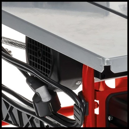 Die Tischkreissäge verfügt über einen Parallelanschlag mit beidseitiger Klemmung und zwei Anschlaghöhen. Das Kabel lässt sich auf der integrierten Kabelhalterung bequem und sicher bei Nichtgebrauchverstauen. Das Hartmetall-Sägeblatt erzielt stets kräftige, saubere Schnittleistungen. Dank eigens vorgesehener Halterung ist der für die Arbeitssicherheit erforderliche Schiebestock immer in Griffweite.