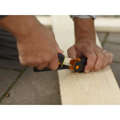 Das Fiskars Hochleistungsmesser eignet sich dank der breiten und robusten Klinge auch für härtere Arbeiten und kann dank der Feile auch zum Entgraten benutzt werden. Die scharfe Klinge aus hochwertigem Stahl weist eine hohe Schneidkraft auf und der freiliegende, ergonomische 3-Komponenten-Griff mit Hammerkopf sorgt für mehr Funktionalität und einen sicheren Halt.