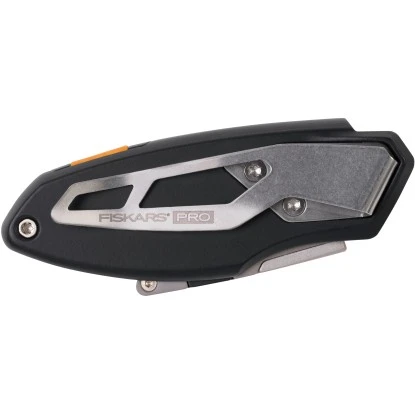 Das Fiskars Klappmesser Pro kompakt mit CarbonMax Universalklinge ist ein schnelles, ergonomisches und extrem robustes Universalmesser in einem kleineren Paket. Es bietet alle Vorteile seiner Pendants in Standardgröße in einer leicht tragbaren Größe. Dieses Messer kann in der Tasche oder am Werkzeuggürtel aufbewahrt werden, ein Gürtelclip sorgt dafür, dass es immer griffbereit ist, und mit einer schnellen, einhändigen Bewegung aus dem Handgelenk kann es geöffnet und geschlossen werden, um sofortigen Zugriff zu ermöglichen. Ergonomische Details wie tiefe Rillen, Konturen und eine intelligente Texturierung bieten Platz für mehrere Griffe und sorgen für rutschfeste Sicherheit und unübertroffenen Komfort. Ein zweifach verriegeltes Klingenfreigabesystem verhindert ein versehentliches Lösen der Klinge, ohne die Geschwindigkeit des Klingenwechsels zu beeinträchtigen. Drücken und schieben Sie einfach das Klingenfreigabesystem, um die Klinge von vorne zu wechseln. Optische und akustische Signale sorgen für Vertrauen in eine sicher verriegelte Klinge. Das verstärkte Metallende bietet zuverlässigen Widerstand gegen Stöße und Stürze. Dieses Messer enthält eine CarbonMax Universalklinge, die 24-mal länger hält als herkömmliche Universalklingen.