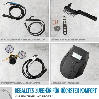 Mit Diem Schweißgerät haben Sie die Möglichkeit, eine Vielzahl von Schweißanwendungen durchzuführen und unterschiedliche Materialien zu bearbeiten. Es bietet Ihnen Flexibilität und Qualität in Ihren Schweißarbeiten. Bitte beachten Sie, dass für das WIG-Schweißen optionales Zubehör erforderlich ist.