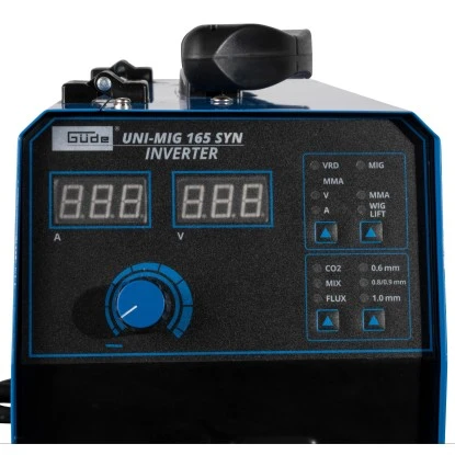 Das Güde Universalschweißgerät Uni-Mig 165 SYN ist ein vielseitiges Inverter-Schweißgerät, das zu den Universalgeräten der Güde-Produktlinie gehört. Mit Diem Gerät sind praktisch alle 4 Schweißverfahren möglich: MIG-MAG, MMA (Elektrodenschweißen), Flux (Fülldrahtschweißen) und optional auch WIG-Schweißen.