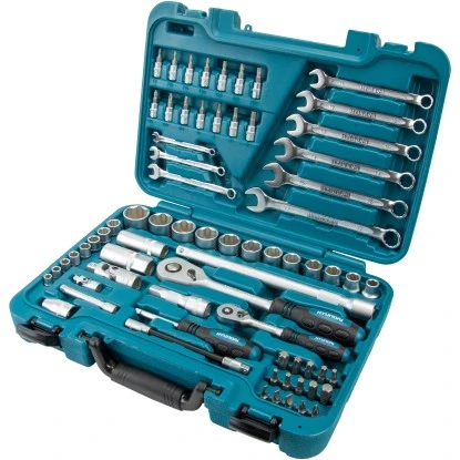 Durch die ergonomisch geformte, mit 72-Zähnen feinverzahnte Umschaltknarre erzielen Sie jederzeit höchste Präzision beim Arbeiten, wobei die abrutschfeste Beschichtung der Griffe der Reduzierung von Verletzungsgefahren dient. Das Hyundai Werkzeugset K70 wird in einem robusten und leichten Kunststoffkoffer inklusive praktischer Einteilung geliefert.