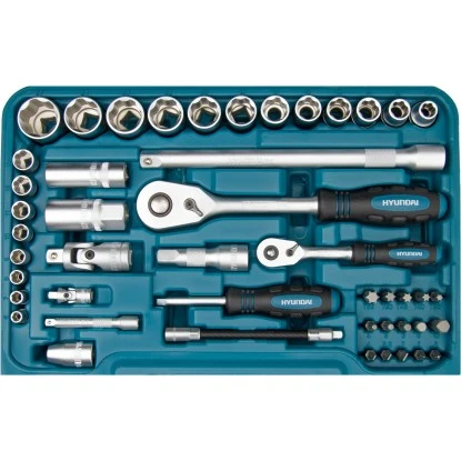 Das professionelle Hyundai Werkzeugset K70 CrV-Stahl besteht aus 70 qualitativ hochwertigen Teilen und ist aus hochfestem, langlebigem Chrom-Vanadium-Stahl gefertigt.