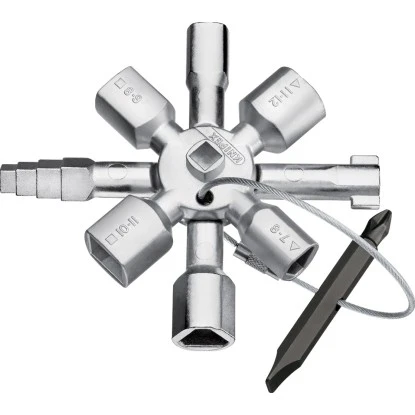 Der Knipex TwinKey für gängige Schränke und Absperrsysteme 95 mm verfügt über 10 Profile, 2 Kreuze sowie 1 Schlüssel für alle gängigen Schließsysteme. Der multifunktionale Schlüssel ist ideal für die Betätigung von Schließungen aus den Bereichen Gebäudetechnik (Heizung und Sanitär, Klima- und Belüftungstechnik, Elektrotechnik), Gas- und Wasserversorgung sowie für Absperrsysteme. Der TwinKey verfügt außerdem über eine hochwertige Oberflächenbeschichtung.