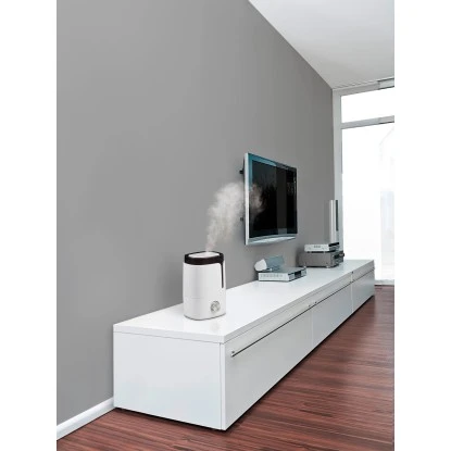 Der Luftbefeuchter verhindert trockene Raumluft und verbessert das Klima in Ihren Wohnräumen. Ideal geeignet ist er für eine Raumgröße von bis zu 20 m². Die Geräteleistung liegt bei 25 W. Der Tank kann mit 3,5 l Wasser befüllt werden, was in der Regel eine Betriebszeit von bis zu 10 Stunden ermöglicht. Bei einem leeren Wassertank schaltet sich der Luftbefeuchter automatisch ab. Zur einfachen Reinigung von Hand verfügt das Gerät über einen besonders großen Tankdeckel. Mittels Ultraschallzerstäubung erzeugt es einen feinen Nebel, dessen Kapazität von niedrig bis hoch reguliert werden kann. Die Nebelleistung beträgt 300 ml/h. Für ein besonderes Dufterlebnis können Sie dem Wasser einige Tropfen aromatischer Öle hinzufügen. Diese Duftöle können separat erworben werden. Durch ein integriertes Gehäusedesign zur Geräuschunterdrückung, ist der Luftbefeuchter mit max. 35 dB besonders leise im Betrieb.