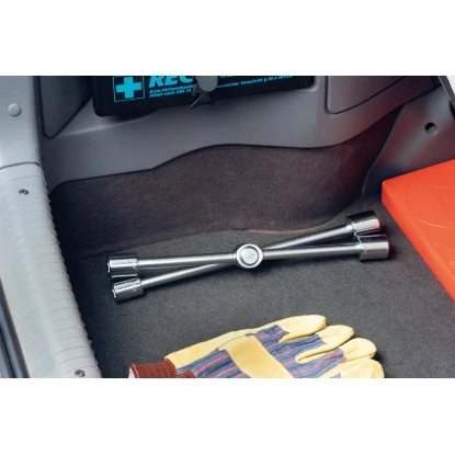 Der LUX-TOOLS Kreuzschlüssel ist klappbar und besitzt 4 gängige Schlüsselgrößen. Durch eine spezielle Druckknopfmechanik kann der Schlüssel platzsparend zusammengeklappt werden und ist ideal zur Unterbringung im KFZ-Bereich. Er enthält die Größen 17 mm, 19 mm, 21 mm, 23 mm und besteht aus Chrom-Vanadium-Stahl.