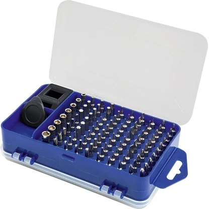 Das Lux Smartphone-Reparatur-Set ist bestens geeignet um Smartphones, Tablets, PCs und andere Multimediageräte zu öffnen und zu reparieren. Es besteht aus 108 Teilen und ist vielseitig einsetzbar für feinmechanische Arbeiten aller Art. Im Set enthalten sind Bits für Schlitzschrauben, PH-Schrauben, TX-Schrauben sowie Innensechskantschrauben für verschiedene Profilgrößen. Des Weiteren enthält es diverse Hilfsmittel zum einfachen Auswechseln verschiedener Komponenten bei Smartphones und Tablets. Das Material der Bits ist hochwertiger und stabiler Chrom-Vanadium-Stahl. Das Werkzeug wird in einer doppelseitig bestückten Kunststoffbox geliefert.