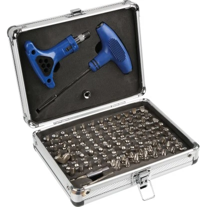 Hergestellt sind die einzelnen Bestandteile aus hochwertigem Chrom-Vanadium-Stahl. Durch die praktische Aluminiumbox können die Werkzeuge ordentlich sortiert und geschützt aufbewahrt werden.