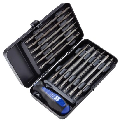 Der LUX-TOOLS Wechselklingen Satz mit Schraubendreher und T-Griff beinhaltet 13 Teile inkl. 12 Klingen mit 2 Antrieben. Der Griff besteht aus 2 Komponenten und der Griffkopf ist mit einem Abrollschutz ausgestattet.