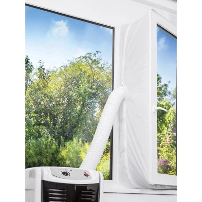 Das praktische OBI Fenster-Kit eignet sich hervorragend zur Nutzung bei mobilen Klimageräten im Innenbereich. Die darin enthaltene weiße Fensterabdichtung verhindert das Eindringen und Rückströmen warmer Luft und Feuchtigkeit. Durch den eingearbeiteten Reißverschluss kann man die Öffnung für den Schlauch je nach Größe des Klimagerätes optimal regulieren. Sie besteht aus 100% Polyester und ist Wasser- und UV-Licht beständig. Die Montage ist mithilfe der mitgelieferten selbstklebenden Klettstreifen denkbar einfach. Durch die trapezförmige Form ist die Fensterabdichtung sowohl für alle gängigen Fenster, als auch optimal für schräge Dachbodenfenster bis max. 400 cm Umfang geeignet. Im Lieferumfang ist eine Fensterabdichtung mit eingearbeitetem Reißverschluss sowie ein Klettband enthalten.