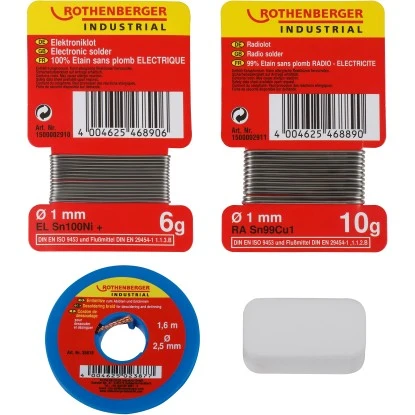 Das Rothenberger Radio-Elektronik Set ist das perfekte Zubehörset für den Bereich Elektroniklöten und eignet sich sowohl für den Heimhandwerker, als auch für den Profi. Dabei sind alle hochwertigen Artikel der Basis-Ausstattung für Elektroniklötbedarf von hoher Qualität.