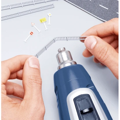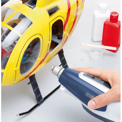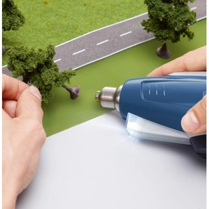 Das Steinel Kompakt-Heißluftgebläse HL Stick ermöglicht dank seiner handlichen Größe und des geringen Gewichts höchste Präzision, auch bei kniffligen Arbeiten. Die sichere Standfläche erlaubt zudem freihändiges Erwärmen. Durch die kompakte Bauweise kommt der HL Stick sogar an schwer zugängliche Stellen, wie zum Beispiel das Innere bei Modell-Arbeiten. An schlecht beleuchteten Arbeitsbereichen bietet das integrierte LED-Arbeitslicht eine unentbehrliche Hilfestellung für punktgenaues Erwärmen.
