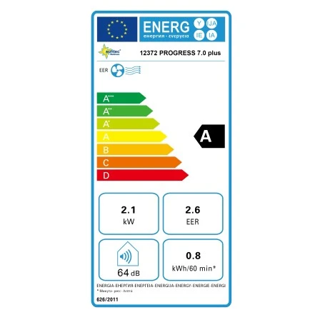 Die Skala der Energieeffizienzklasse reicht von A (sehr effizient) bis G (weniger effizient).
