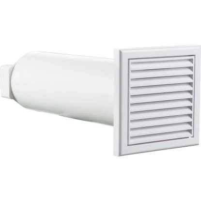 Der Teleskop-Rundrohr-Mauerkasten eignet sich ideal für den Einsatz in Lüftungssystemen. Er kann zur Mauerdurchführung in Bad, Küche und im Wohnraum eingesetzt werden und dient der Belüftung und Entlüftung. Der Mauerkasten besteht aus weißem Kunststoff und ist in der Länge von 28 cm bis zu 48 cm ausziehbar. Sein eckiger Rohranschluss hat die Maße 110 mm x 55 mm. Der Nenndurchmesser des Telekop-Kanals beträgt 100 mm. Der Teleskop-Rundrohr-Mauerkasten ist temperaturbeständig von -30 °C bis +70 °C.