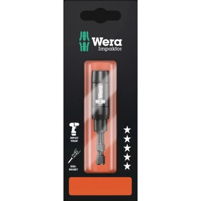 Der Wera Bit-Halter Impaktor 897/4 mit Ringmagnet und Sprengring eignet sich perfekt zur Abfederung extremer Impulsspitzen. Durch die Doppeltorsionsfeder ist ein besonderer Torsionseffekt gegeben.