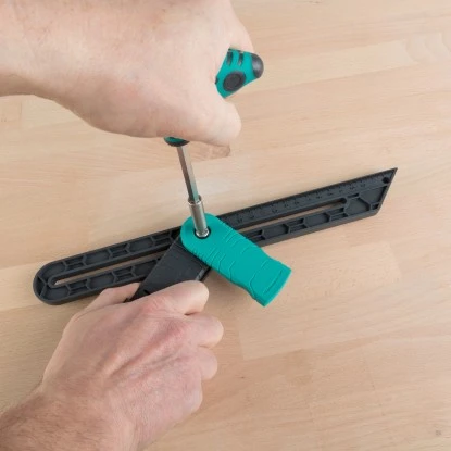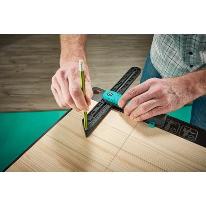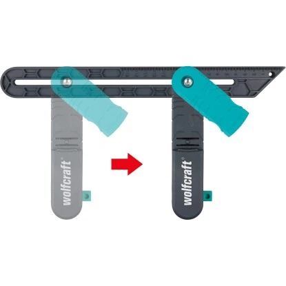 Die Wolfcraft Winkelschmiege mit Streichmaßfunktion ist eine clevere Lösung zum komfortablen Abgreifen von Winkeln mit anschließender Übertragung auf das Werkstück – ideal bei Verlegearbeiten oder im Möbelbau. Im ersten Schritt schieben Sie die beiden Kunststoffschenkel in die Wandecke und richten sie entlang der Wände aus. Mit dem Feststellhebel fixieren Sie die Position. Der Hebel ist so konstruiert, dass er auch in engen Arbeitsbereichen mit nur einer Hand von beiden Seiten gut zu bedienen ist. Im nächsten Schritt positionieren Sie die Winkelschmiege an Ihrem Werkstück und zeichnen den Winkel an. Auch zur Nutzung als Streichmaß (Anreißen von parallelen Linien) eignet sich die Winkelschmiege hervorragend. Dabei unterstützen Sie die Skala auf dem beweglichen Schenkel und das Führungsloch für den Bleistift. Einfach den Anschlag anlegen, den Stift einstecken und die Winkelschmiege über das Werkstück führen.